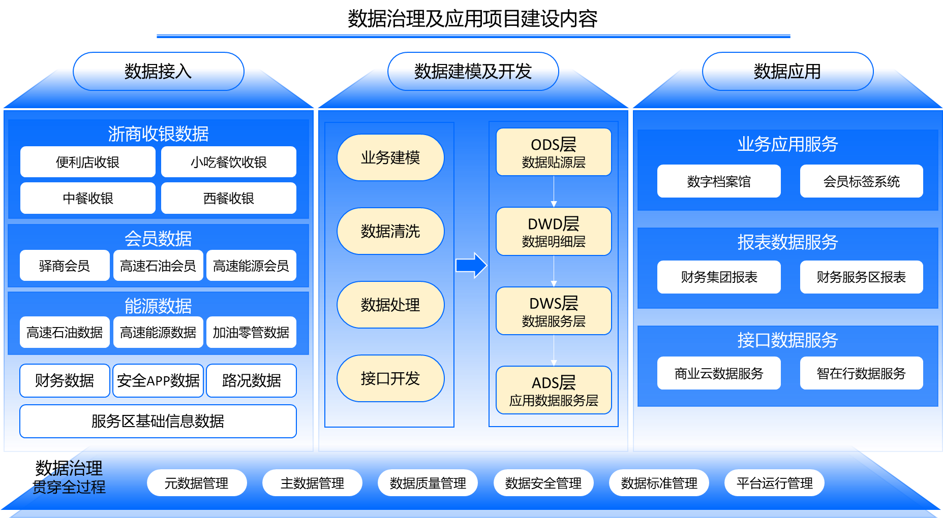 浙商集团作为浙江省内规模最大的国有综合交通商业投资运营商,携手弘云信息针对浙江省高速公路服务区收银、财务、路况、会员、能源等业务版块,进行规范、专业治理,促进数据治理+数据应用的双螺旋数据价值体系转化。