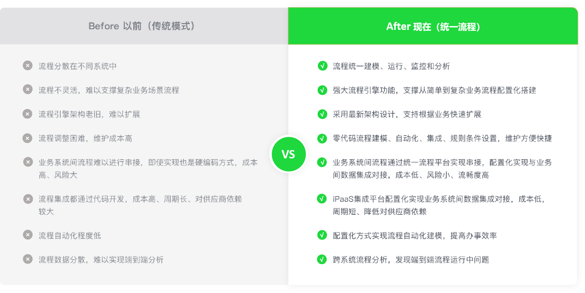 采用业务流程协同平台后,与传统模式的优缺点分析